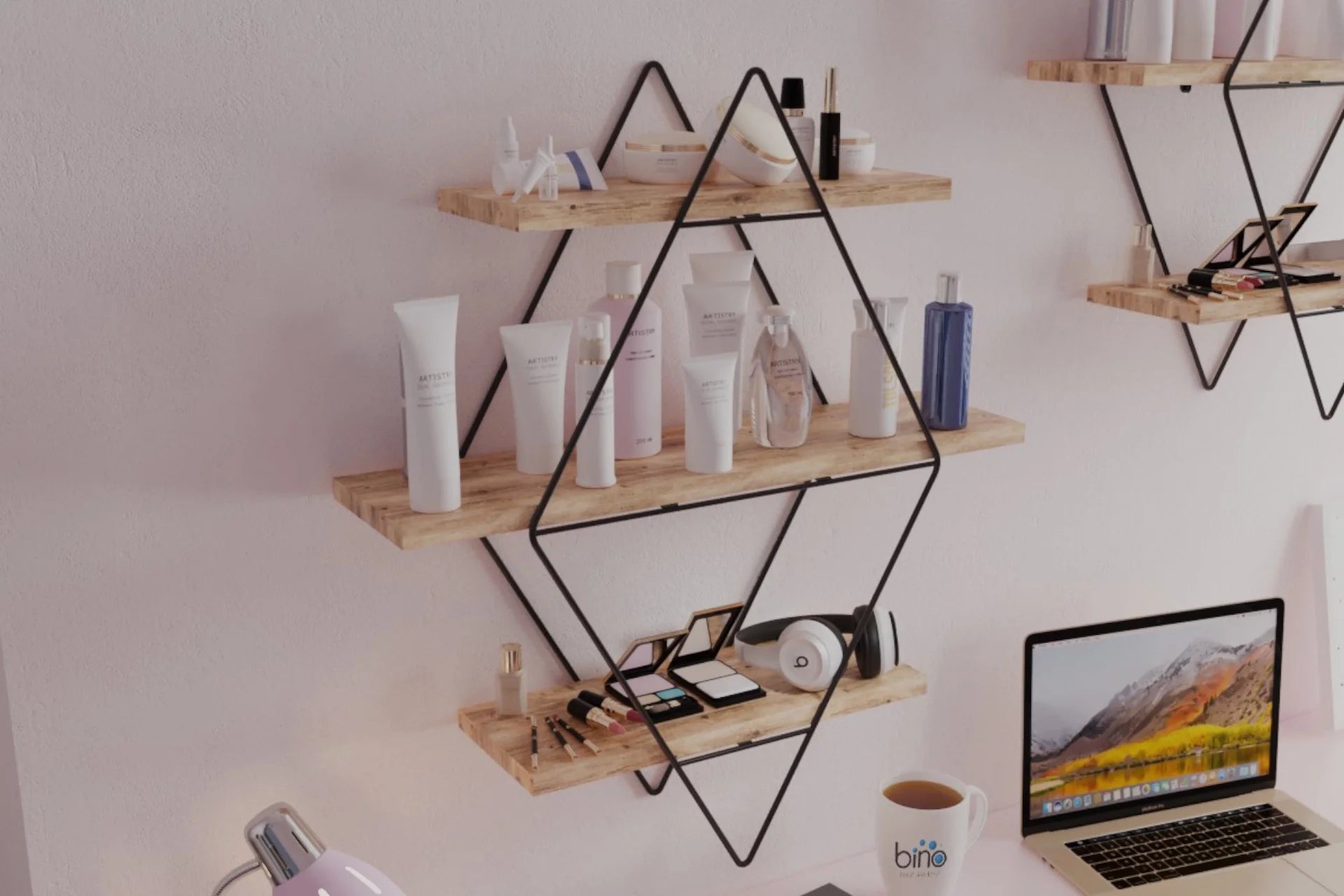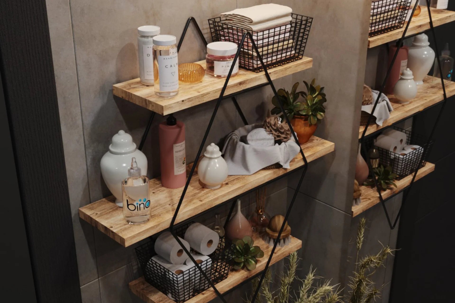 Mekanlarınıza modern bir soluk getirin! 70 cm yüksekliği ve prizmatik tasarımıyla dikkat çeken bu büyük boy raf, hem geniş depolama alanı sunar hem de dekorasyonunuzu premium bir seviyeye taşır. Masif ahşabın doğal dokusu ile altın kromajın ışıltısını birleştirerek hem lüks hem de dayanıklı bir seçenek sunar.