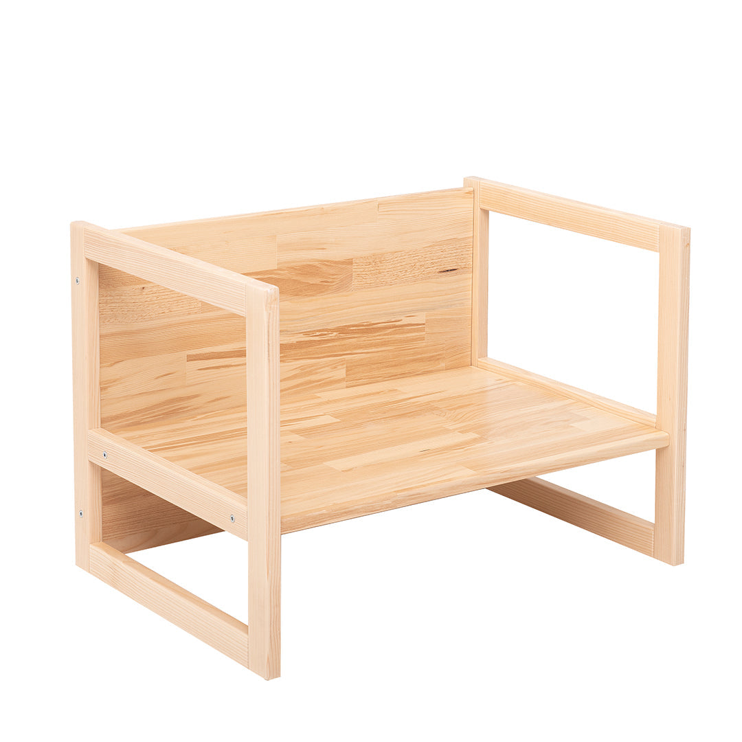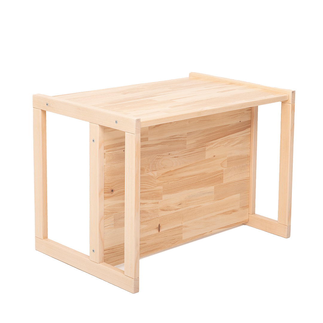 Kukka Masif Ahşap Dönüştürülebilir Masa ve Sandalye çok amaçlı dönüştürülebilir bir montessori ürünüdür. Ürün hem tabure hem de masa işlevini görür. Çocuğunuz ister üzerine oturarak masa başı oyun aktivitelerini gerçekleştirebilir isterse de ürünü kendi başına bir masa olarak kullanarak eğlenceli oyunlar oynayabilir